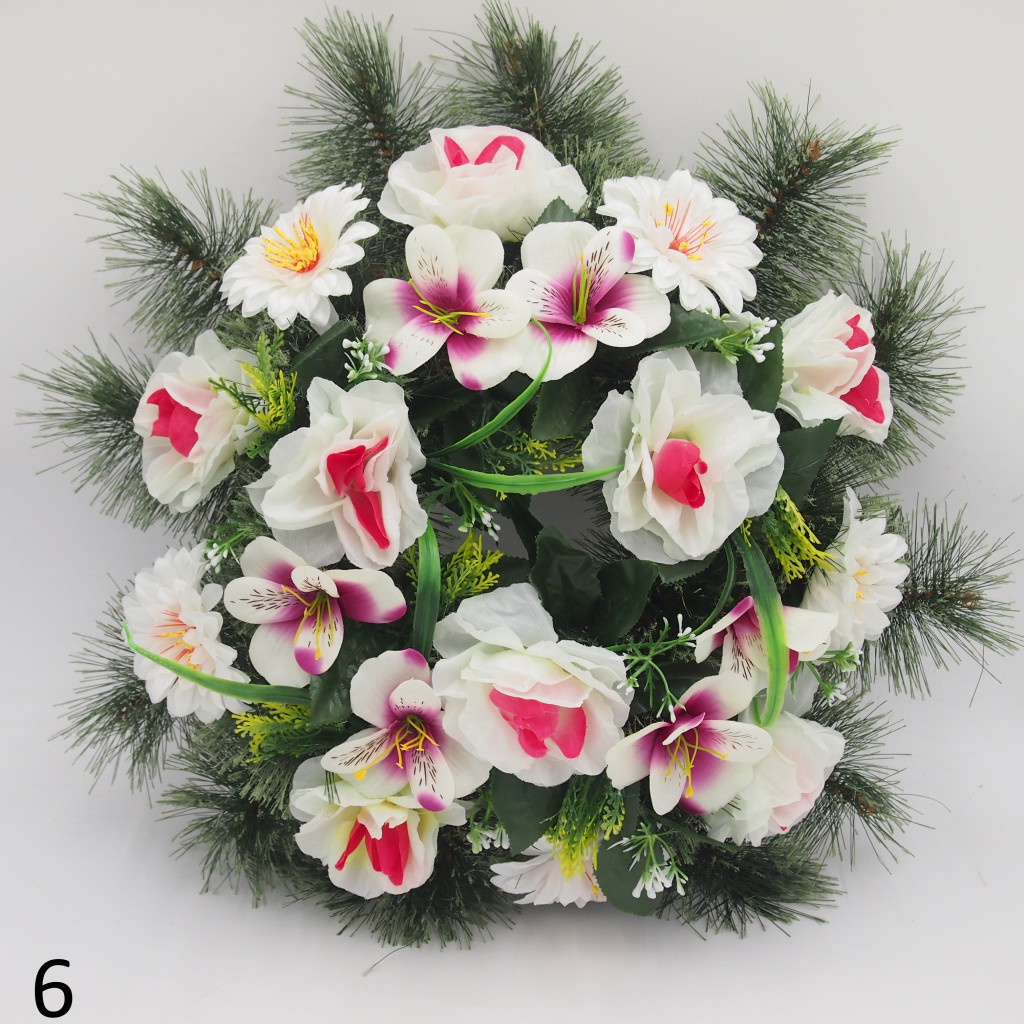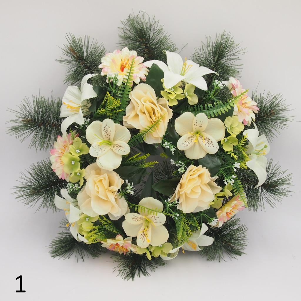 Selyem boróka görög alapon vegyes selyemvirág díszítés