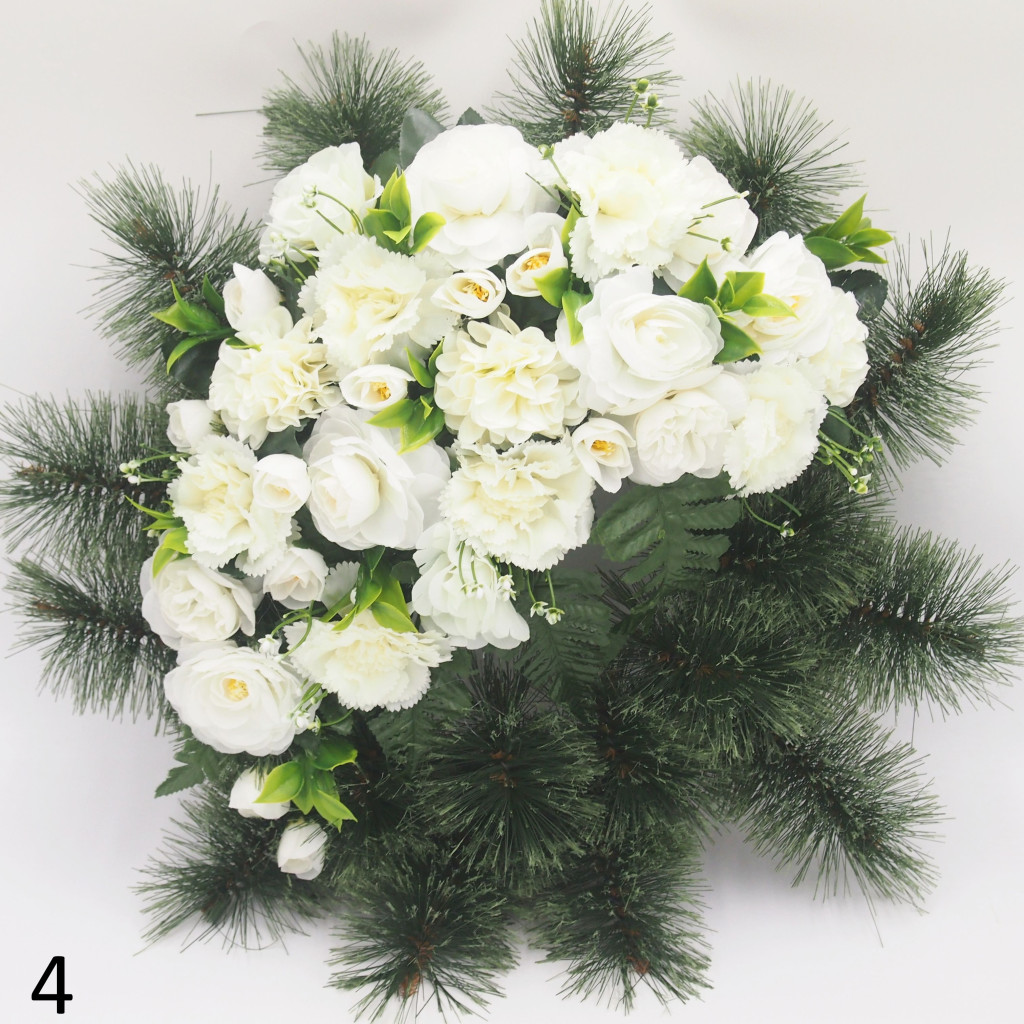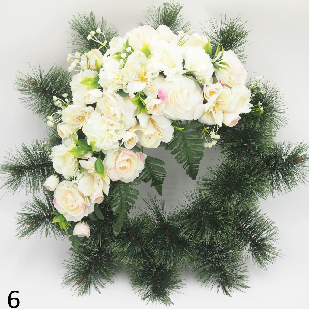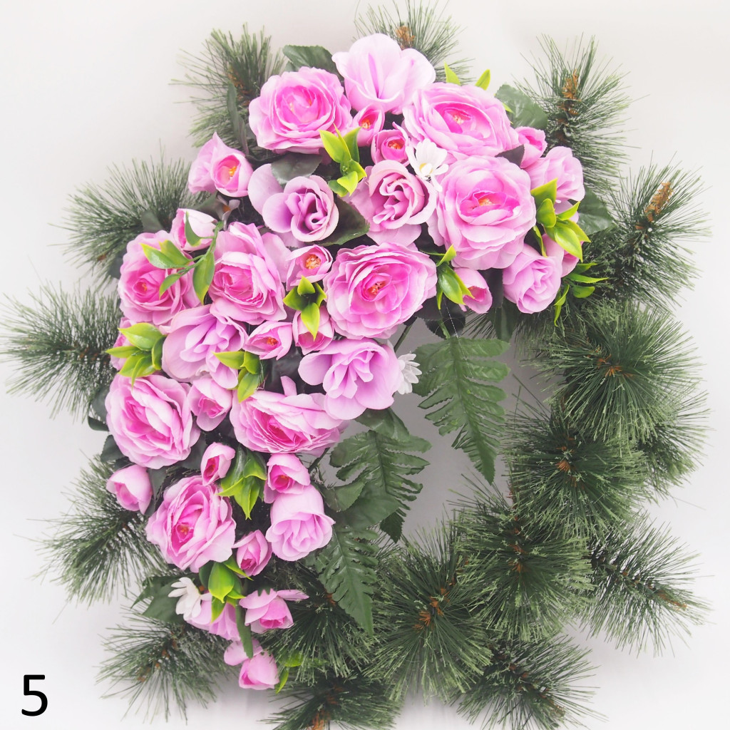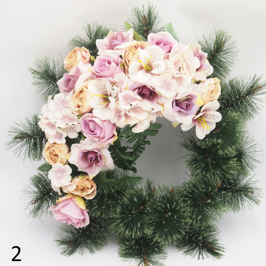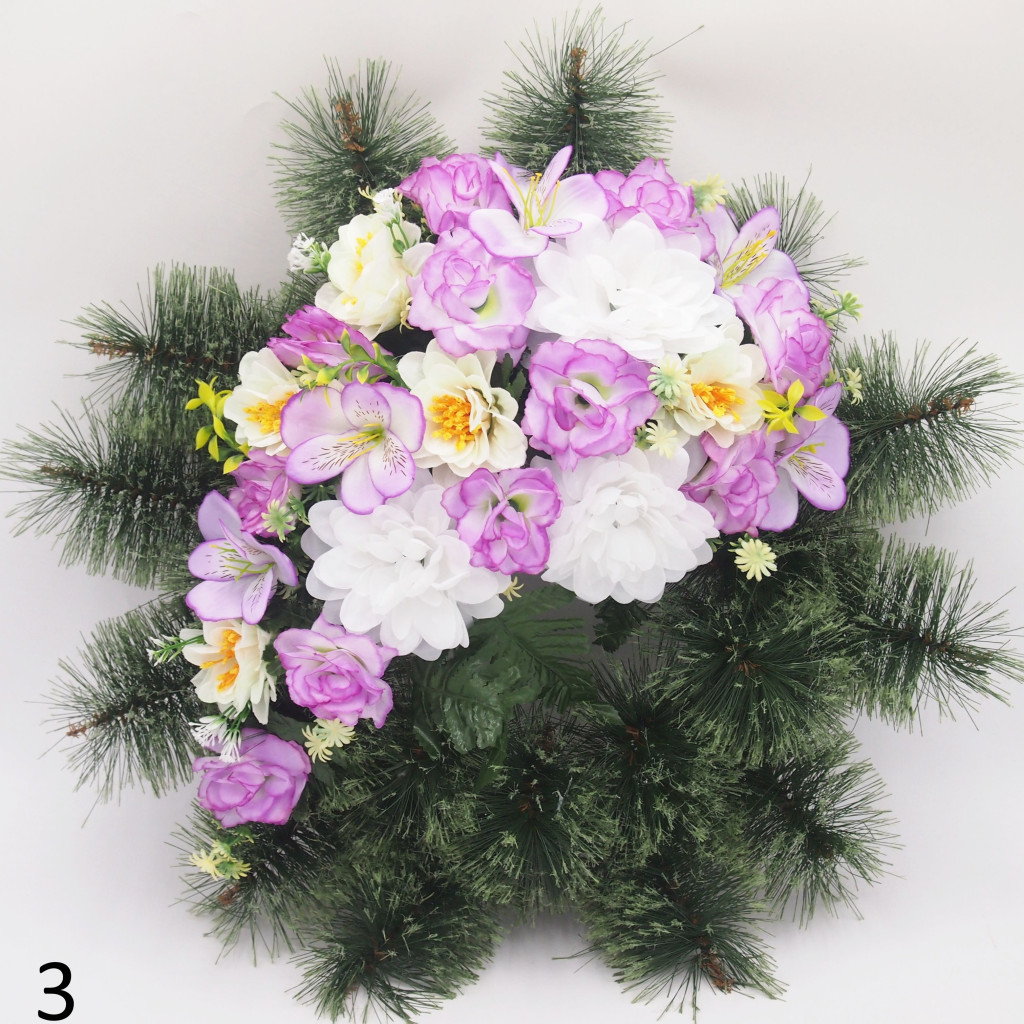 Selyem boróka görög alapon vegyes selyemvirág díszítés.