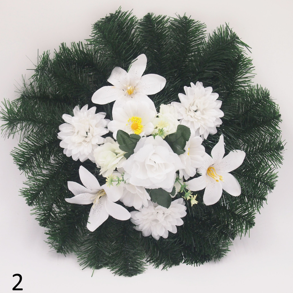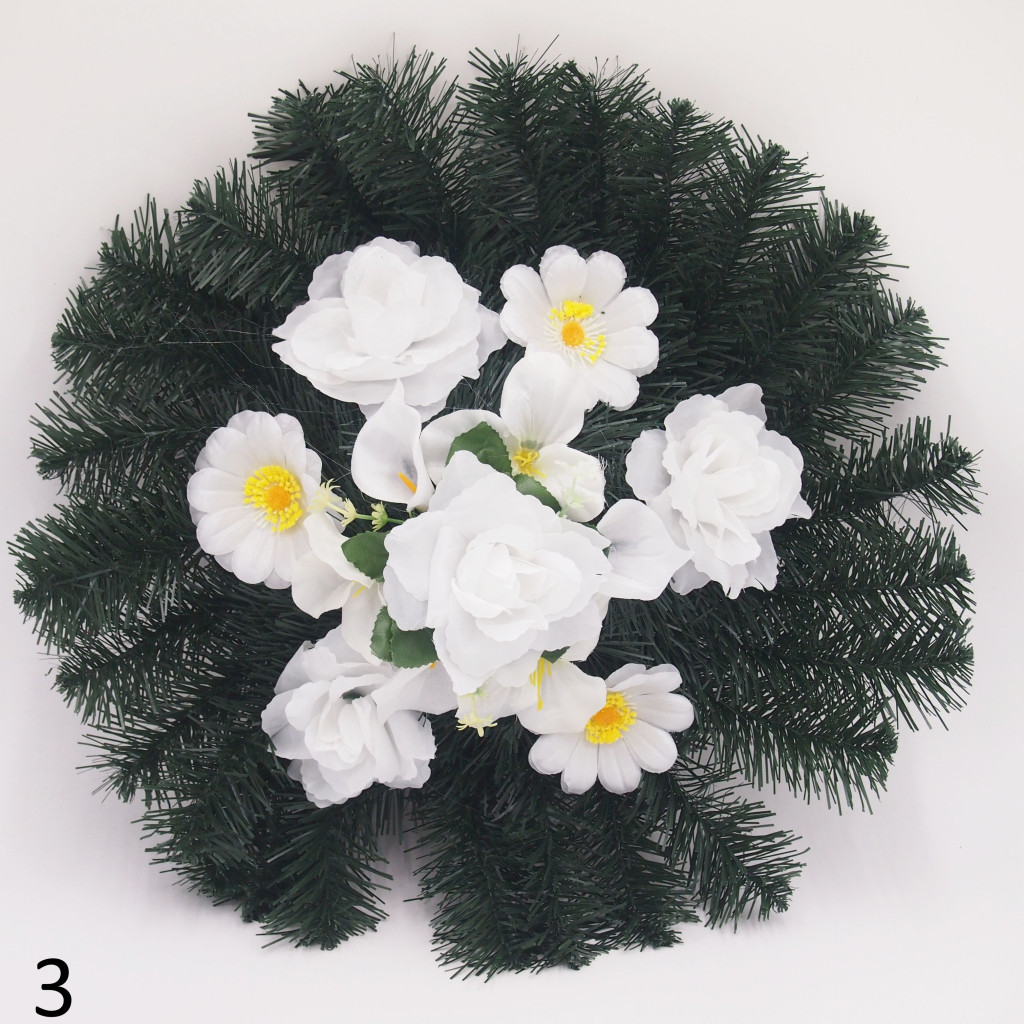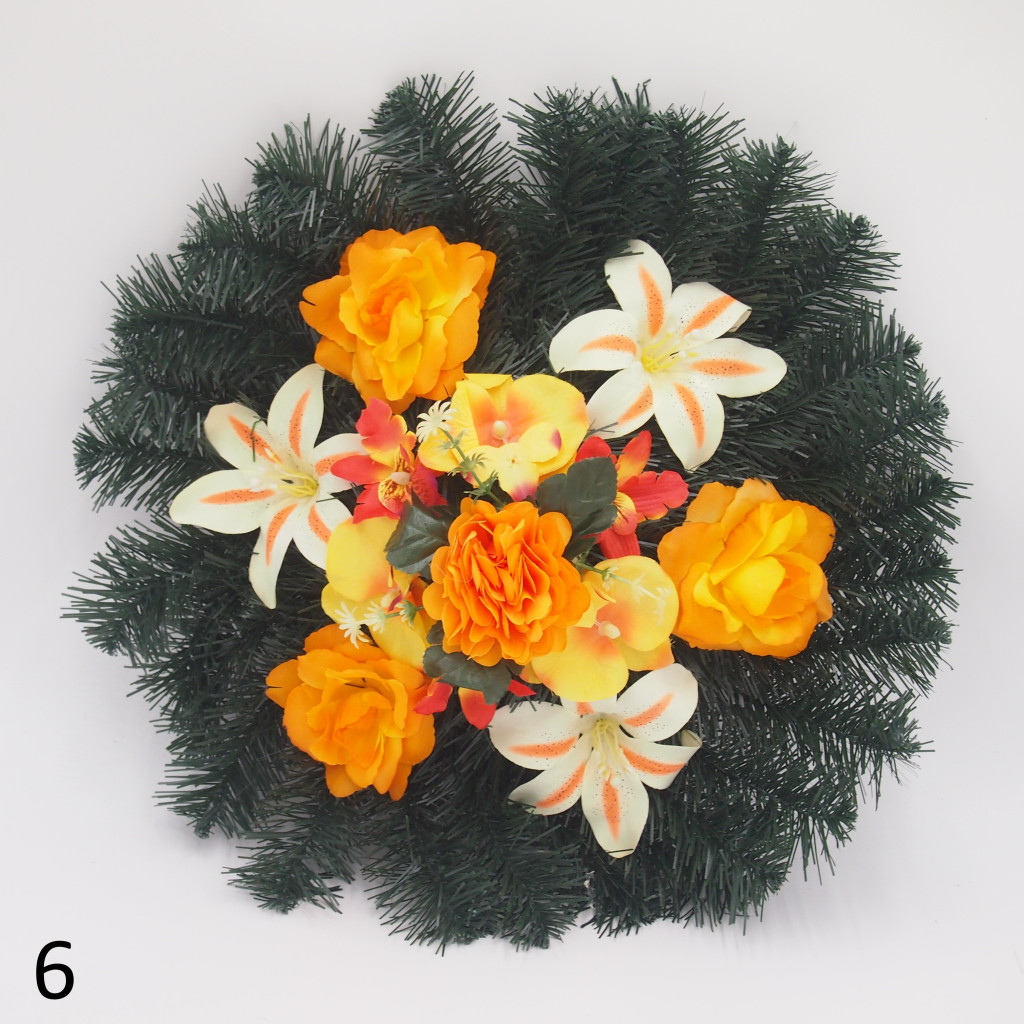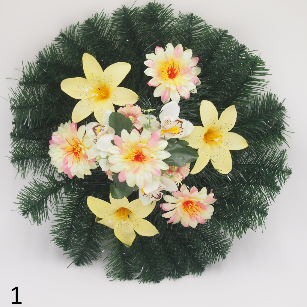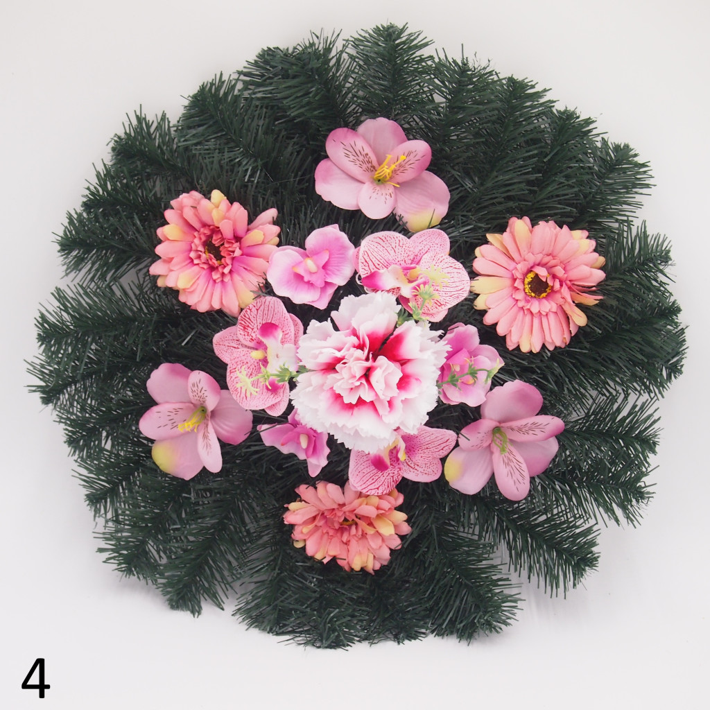 Selyem domború alapon vegyes selyemvirág díszítés.