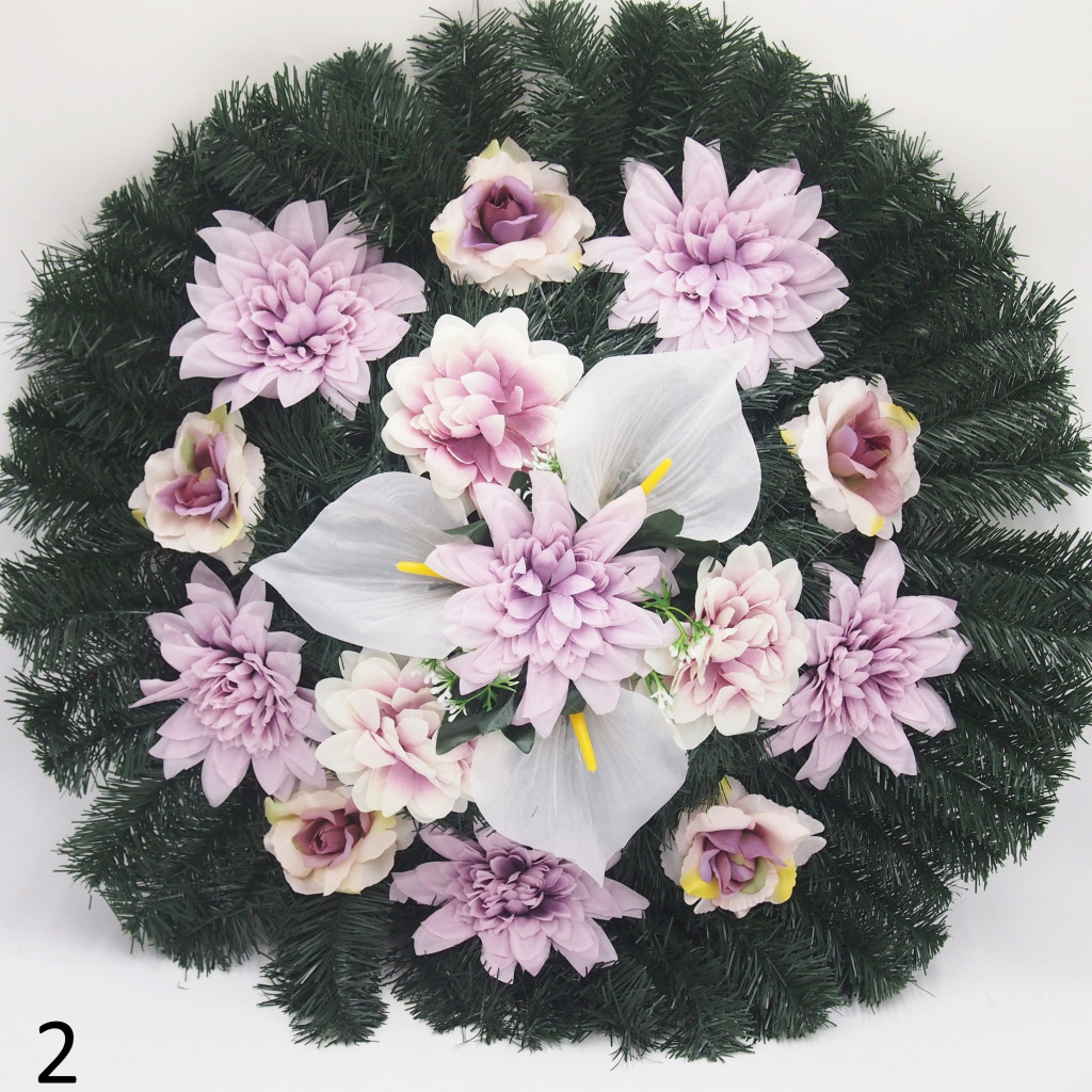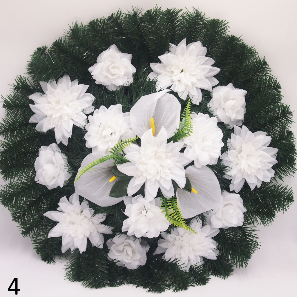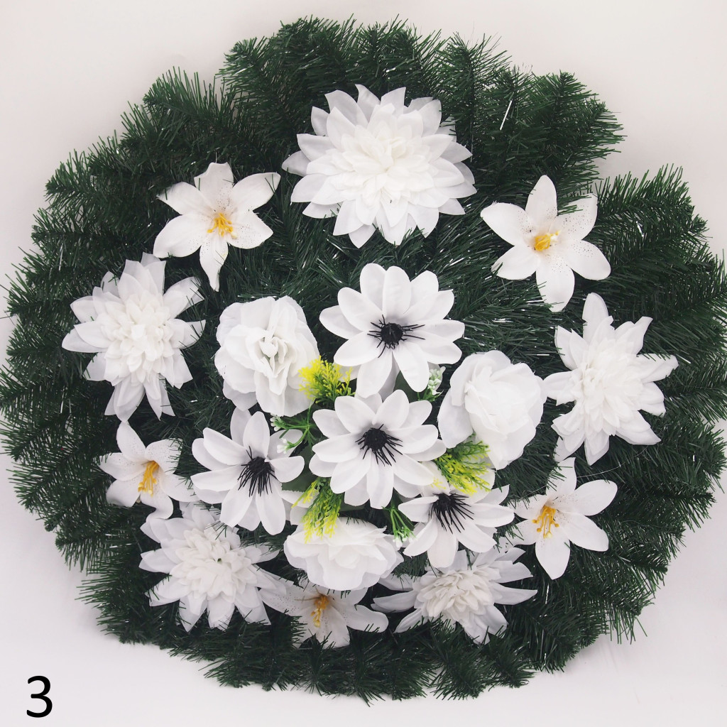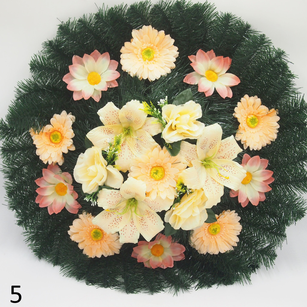 Selyem domború alapon vegyes selyemvirág díszítés.