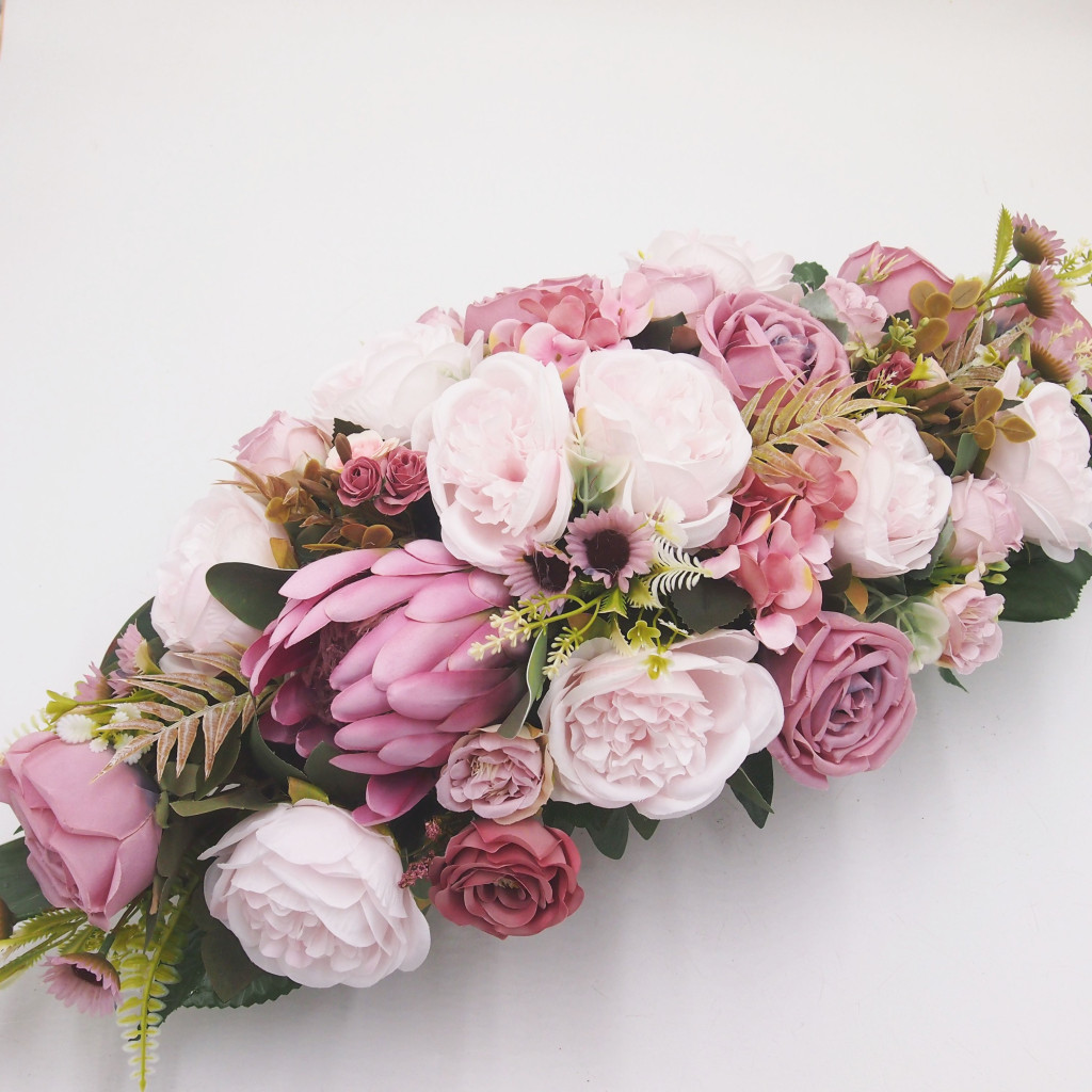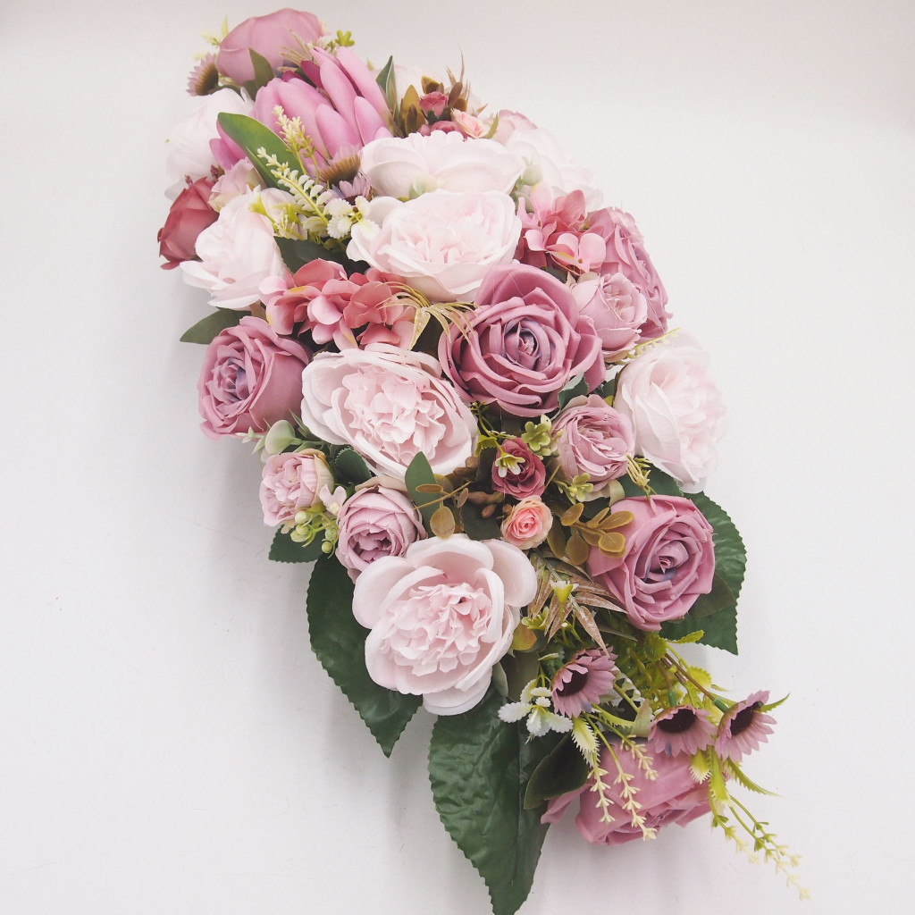Selyemvirágok száraz oázisba tűzdelve, alatta apró murva nehezéknek, mű tálban.