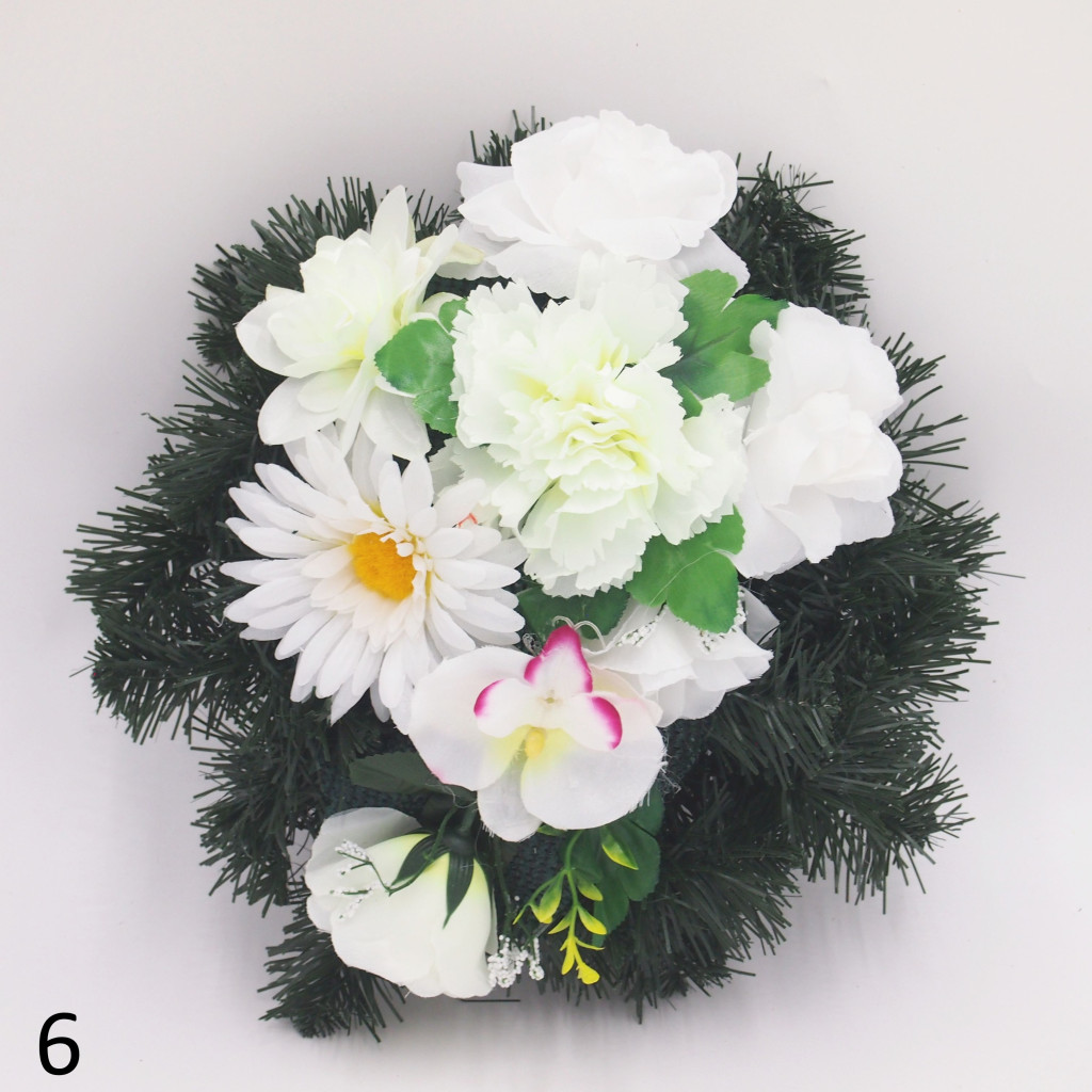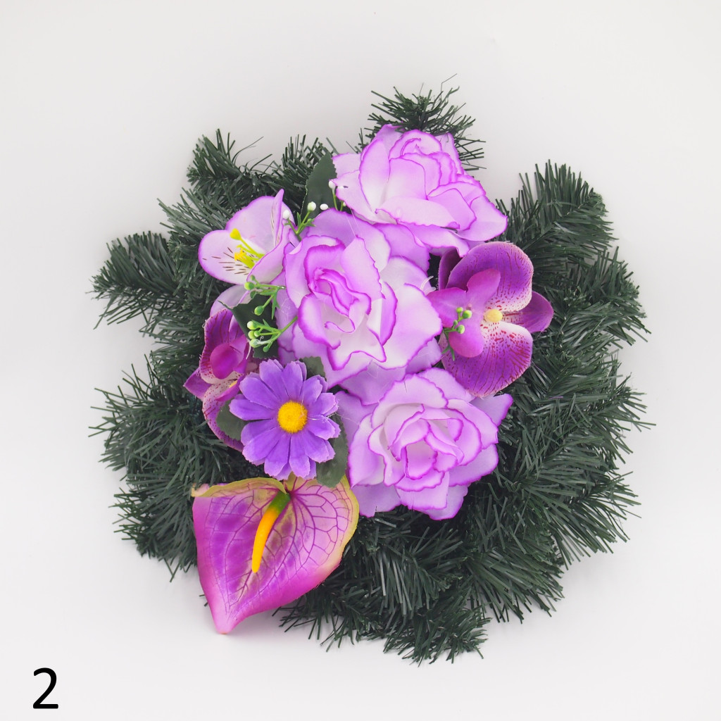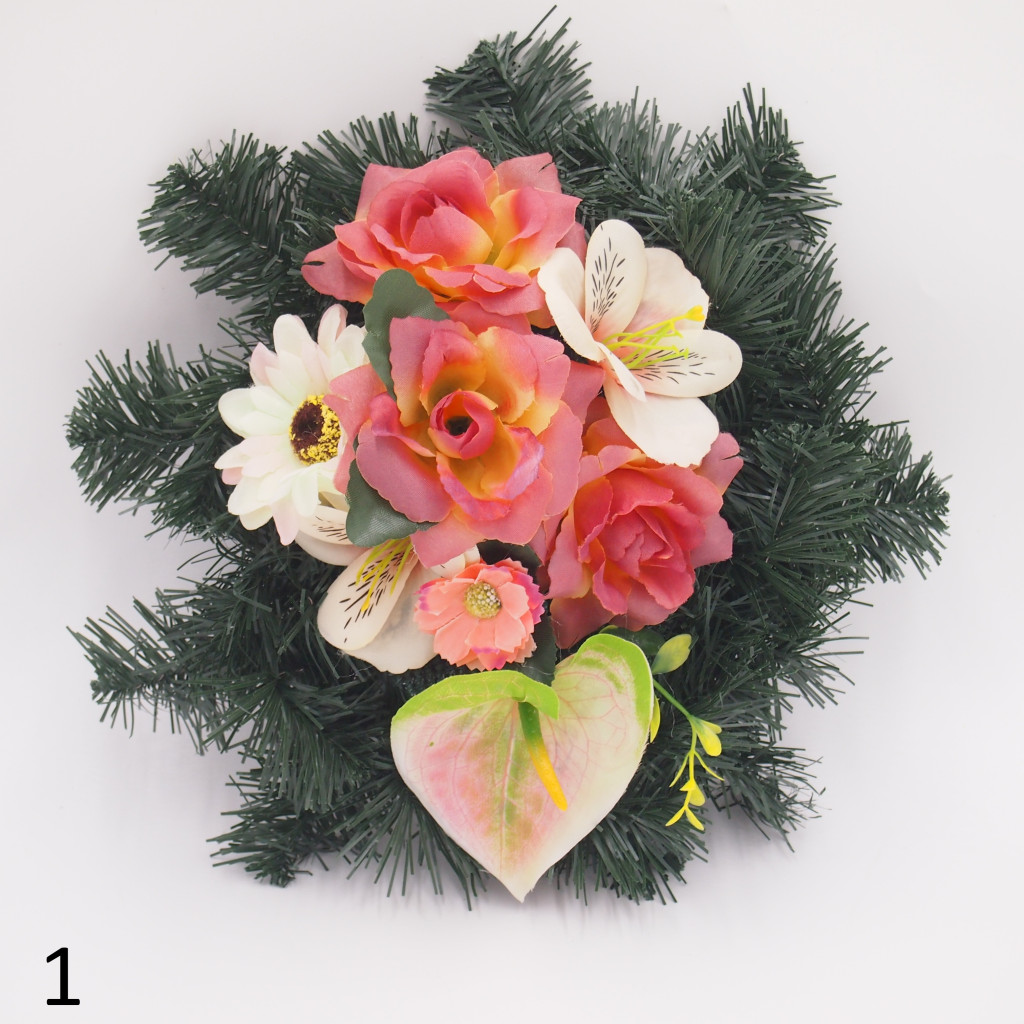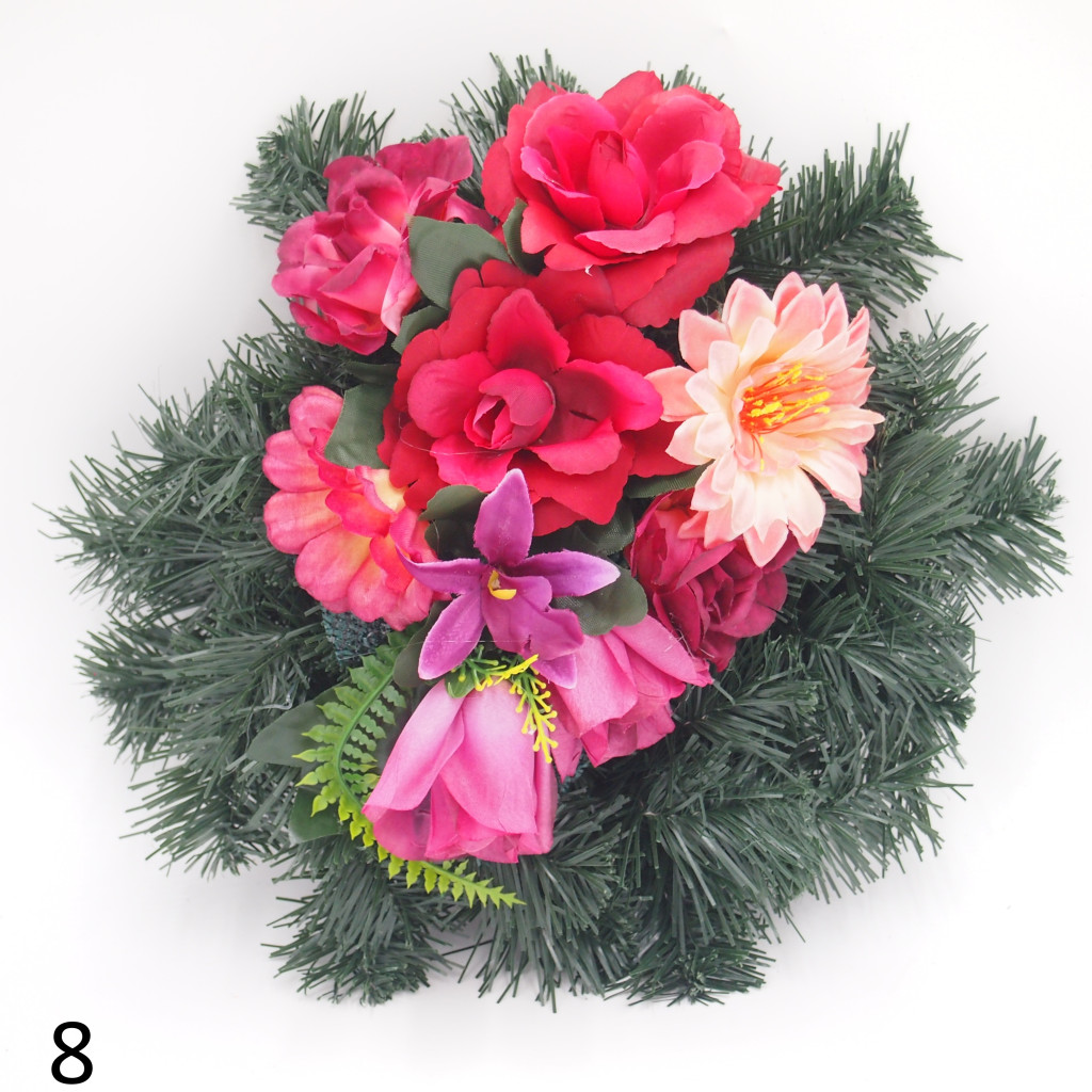 Selyem görög alapon vegyes selyemvirág díszítés.