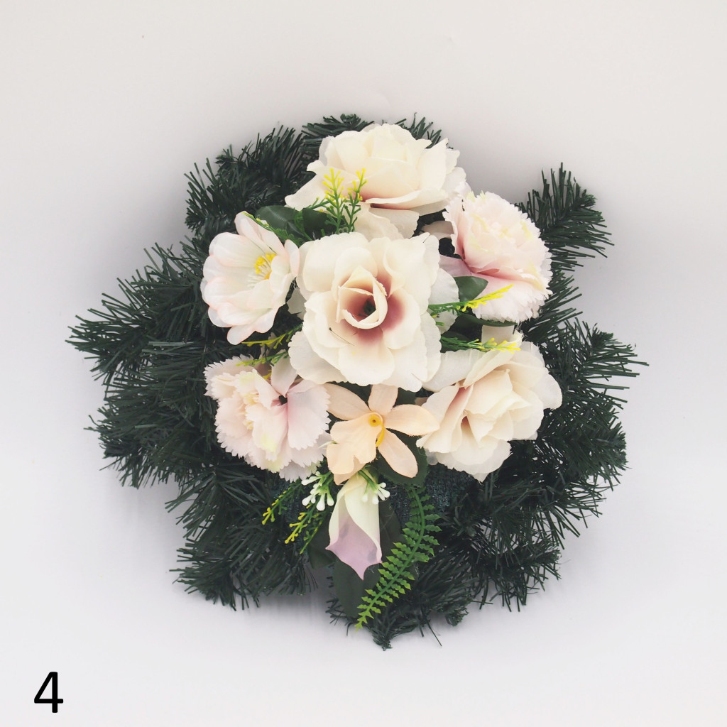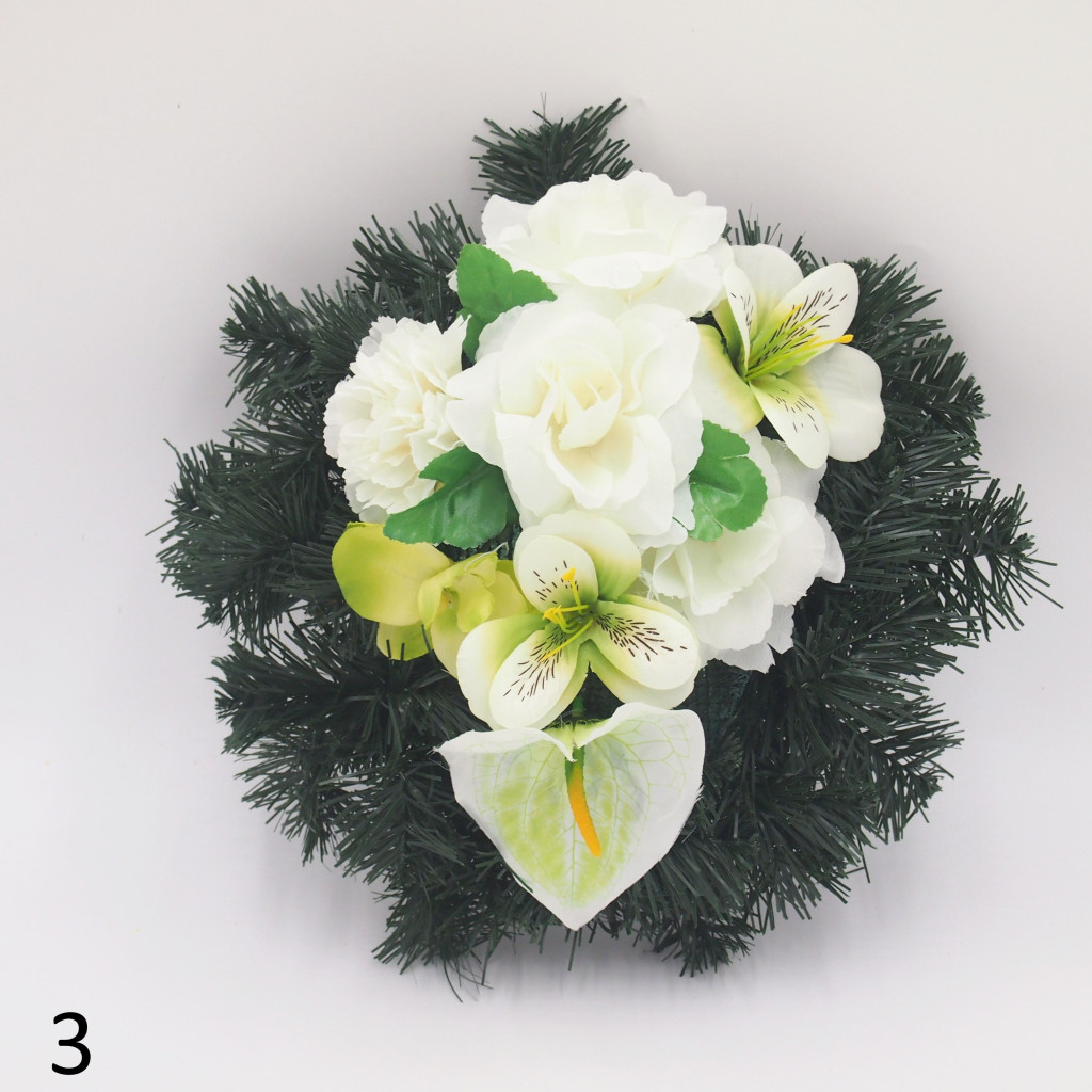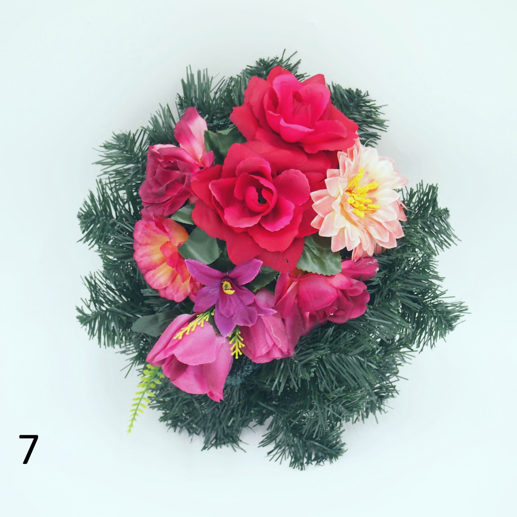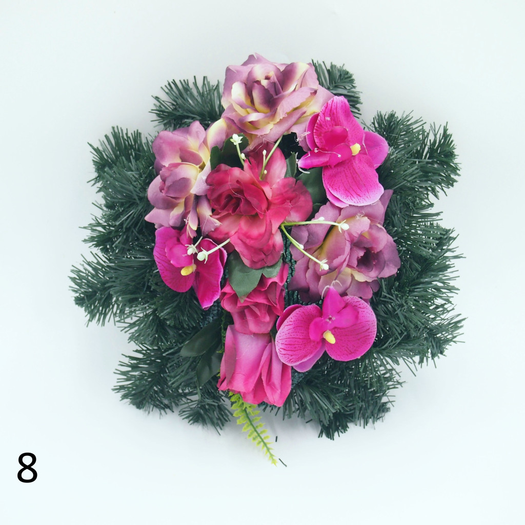Selyem görög alapon vegyes selyemvirág díszítés.