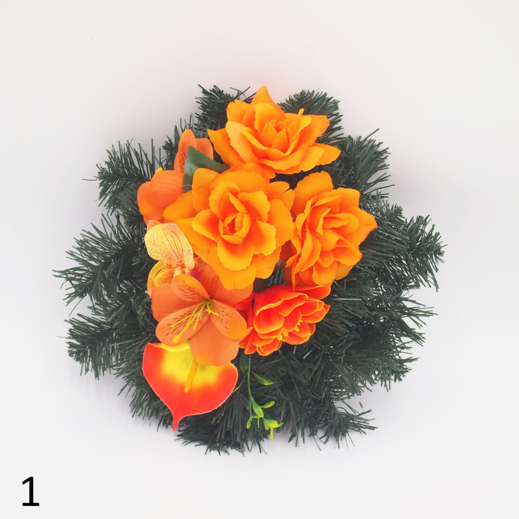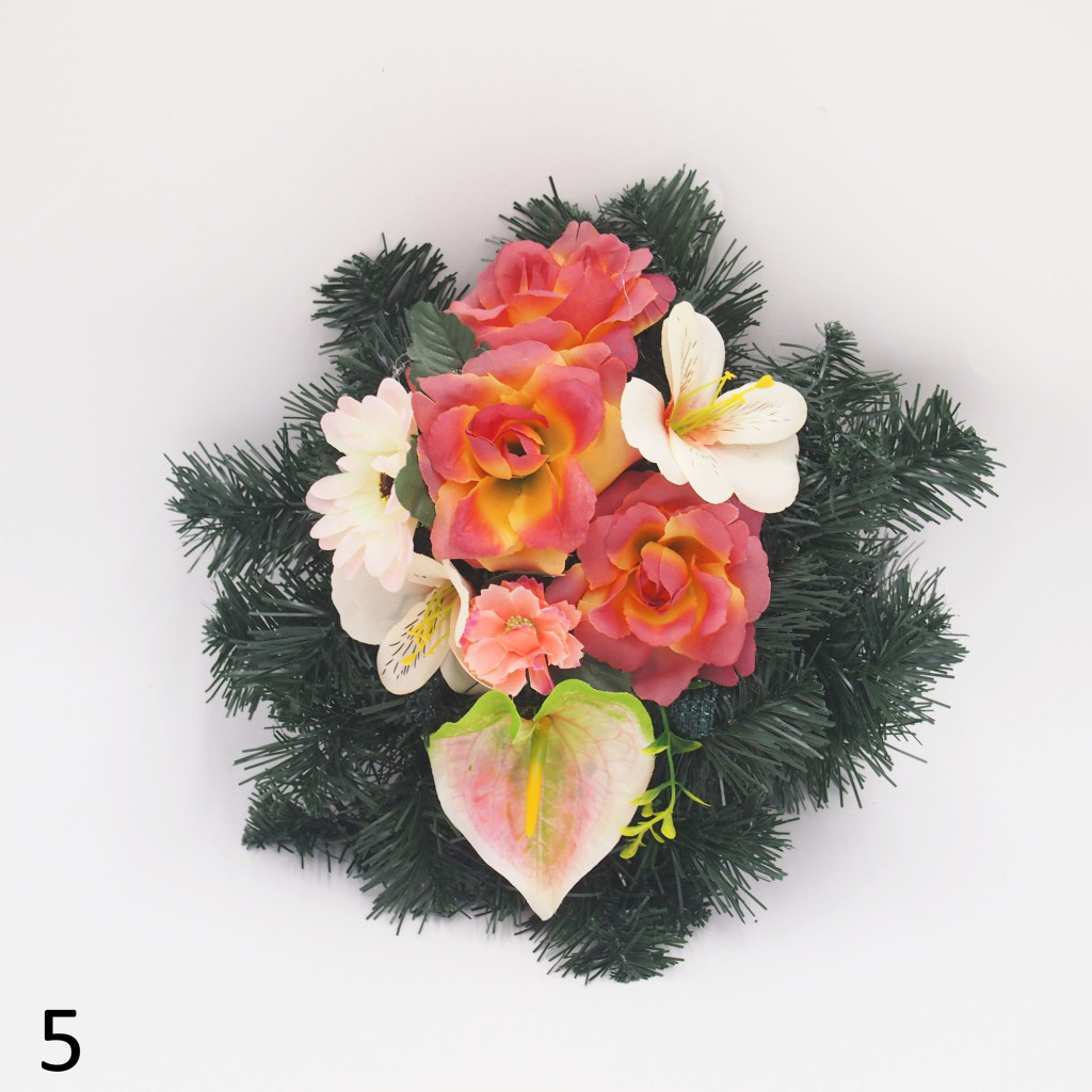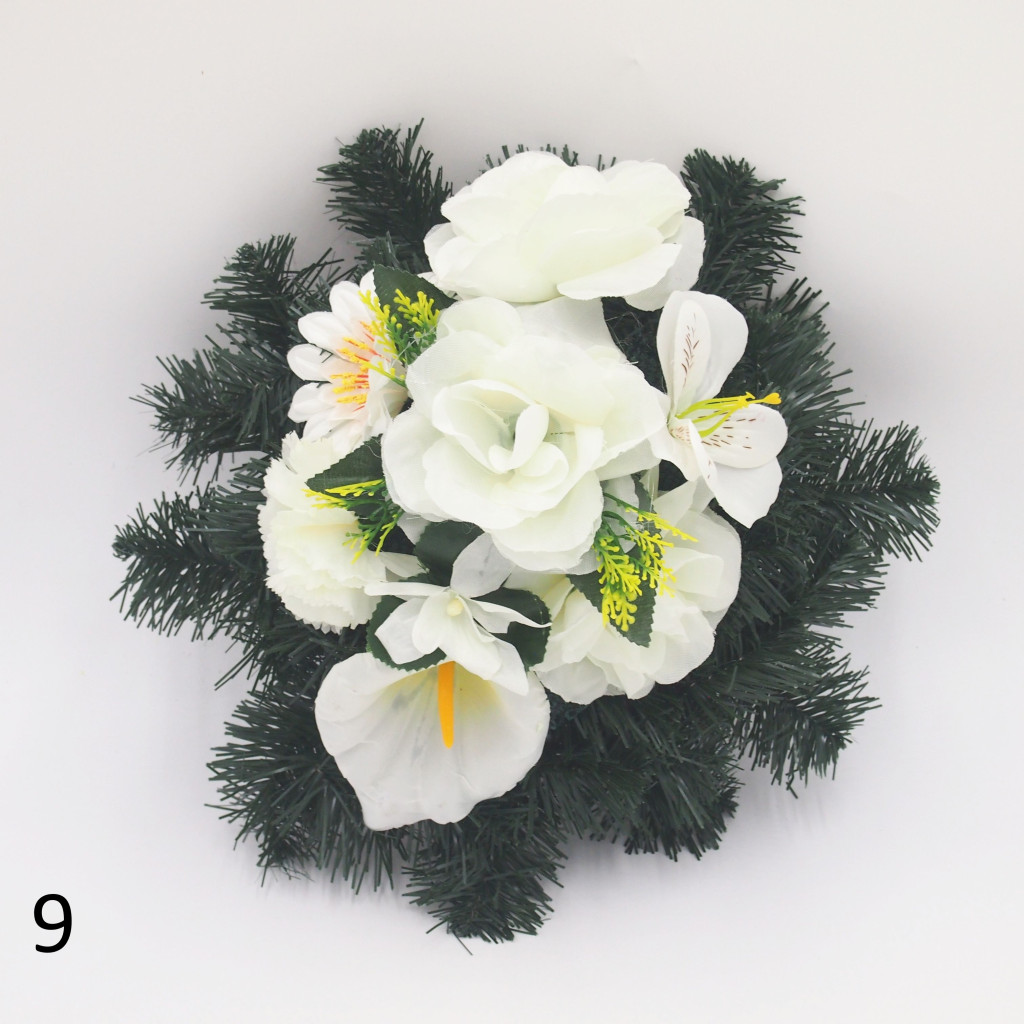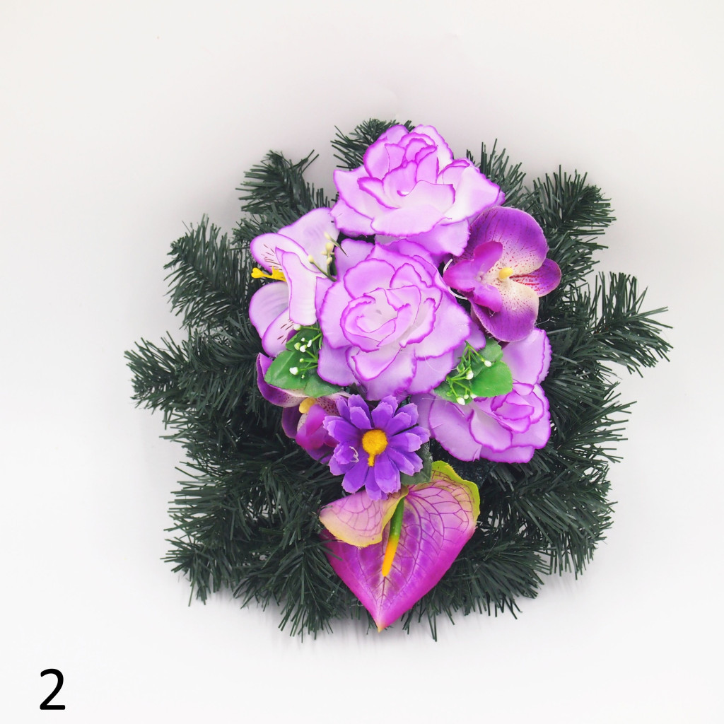 Selyem görög alapon vegyes selyemvirág díszítés.