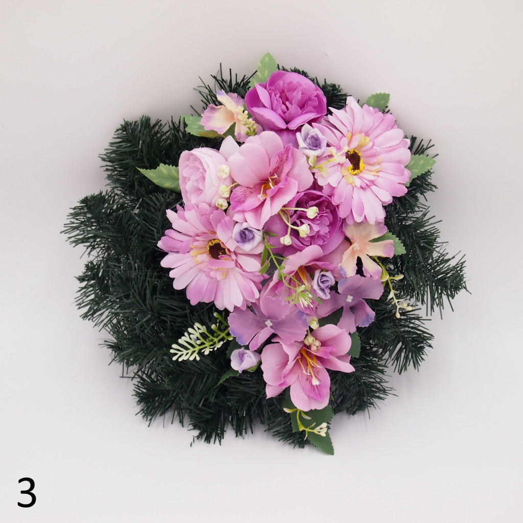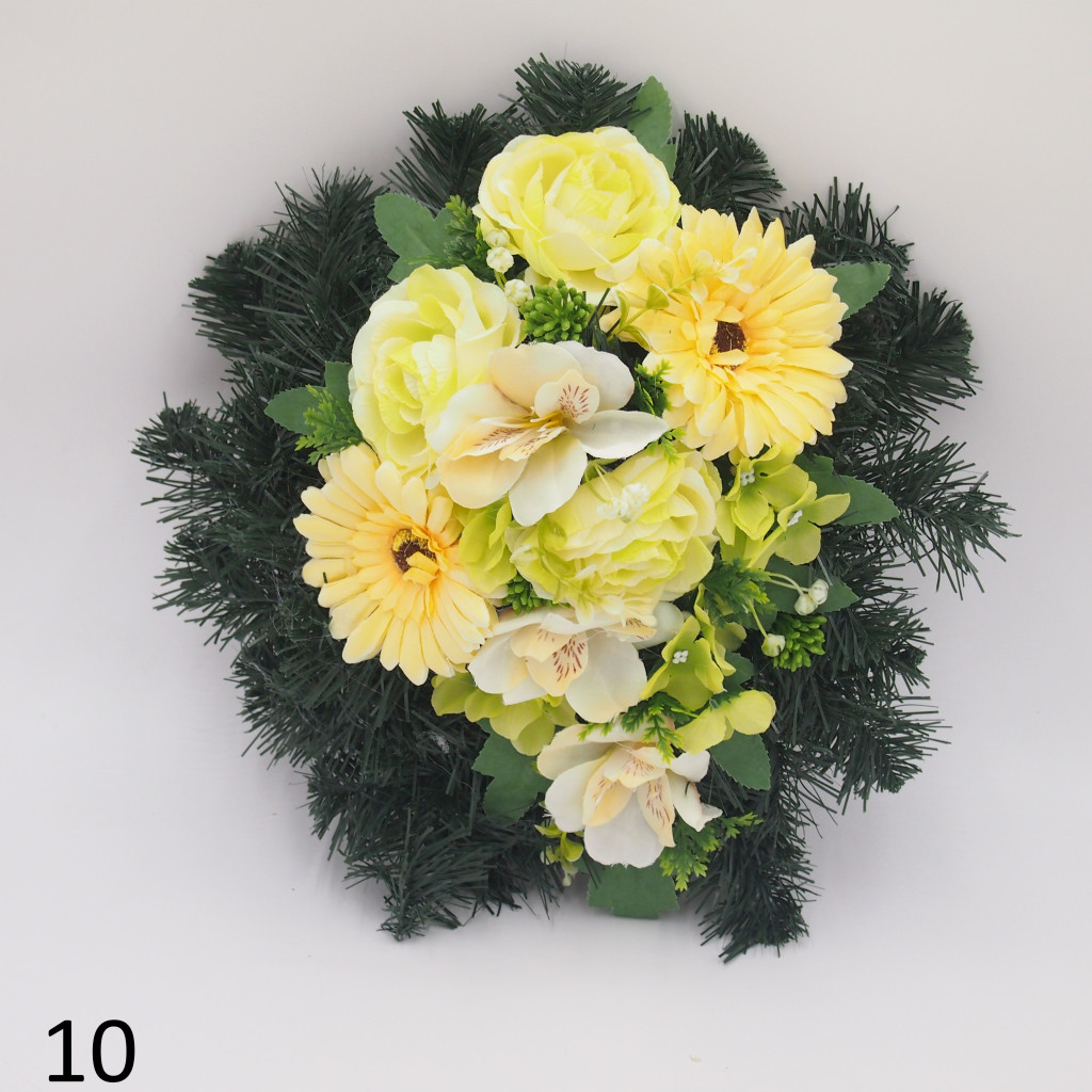 Selyem görög alapon vegyes selyemvirág díszítés.