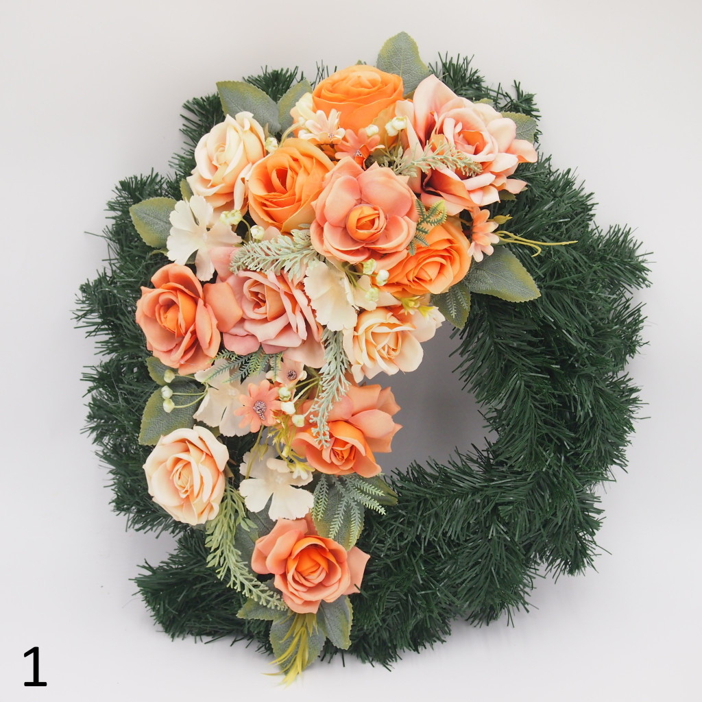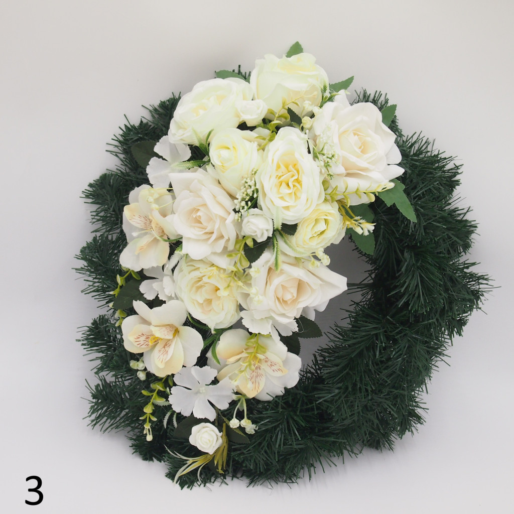 Selyem görög alap vegyes selyemvirág díszítéssel.