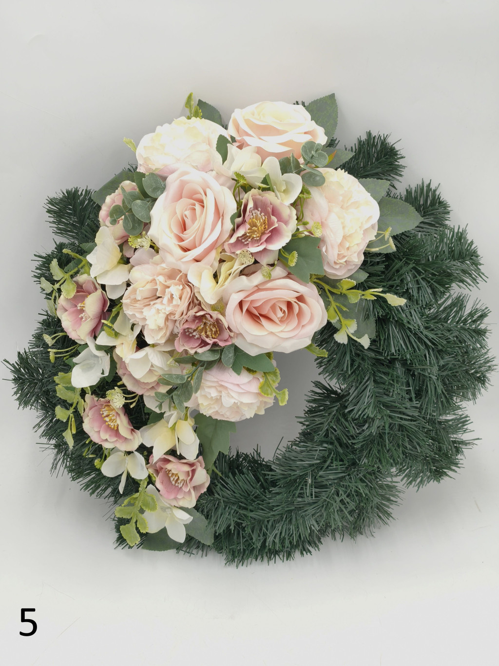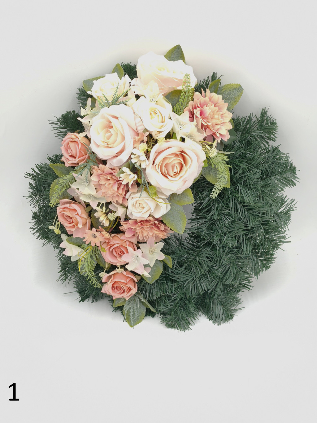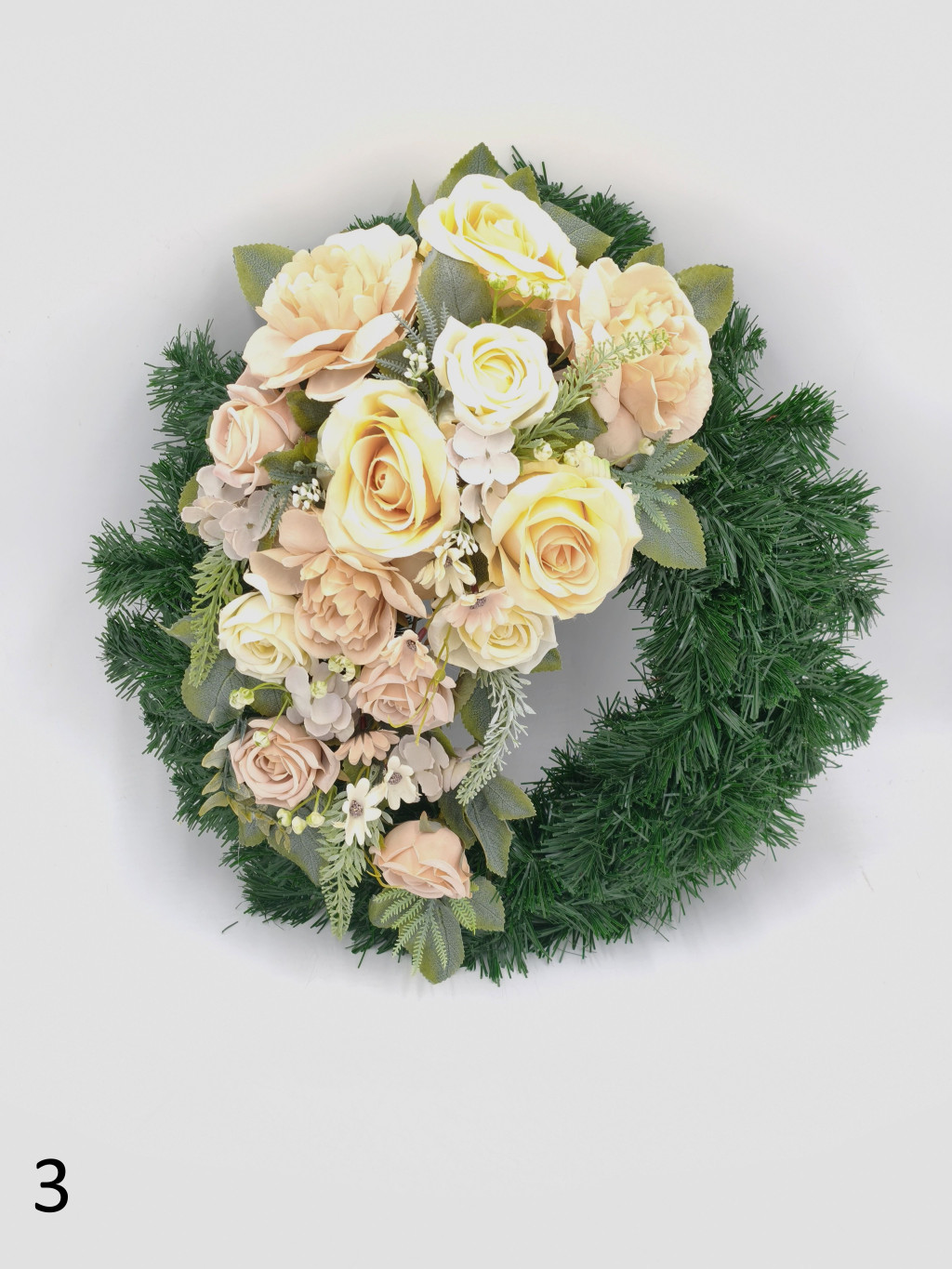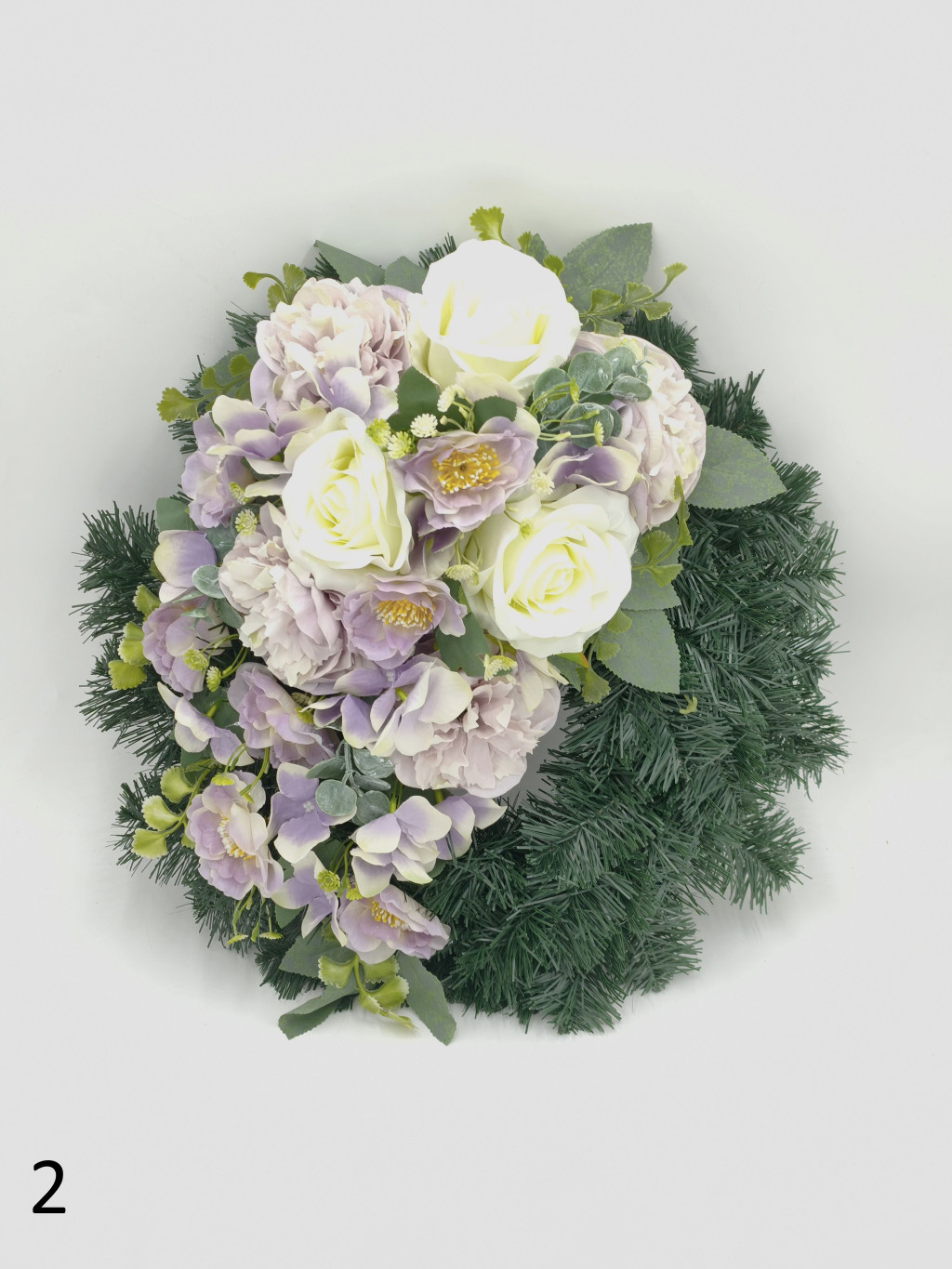 Selyem görög alap vegyes selyemvirág díszítéssel.