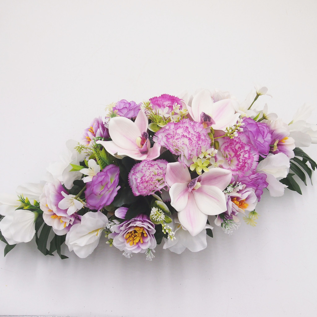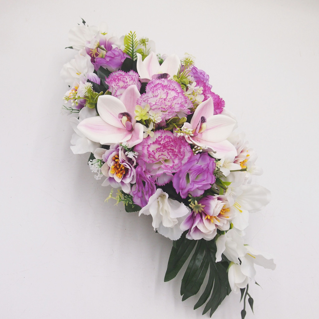 Selyemvirágok száraz oázisba tűzdelve, alatta apró murva nehezéknek, mű tálban.