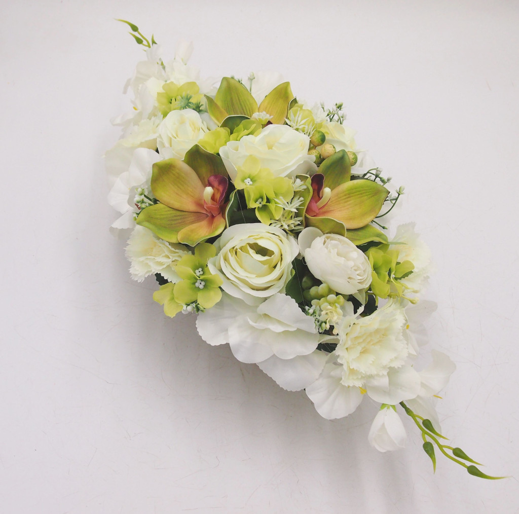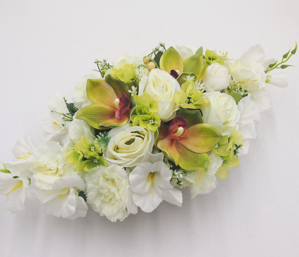 Selyemvirágok száraz oázisba tűzdelve, alatta apró murva nehezéknek, mű tálban.