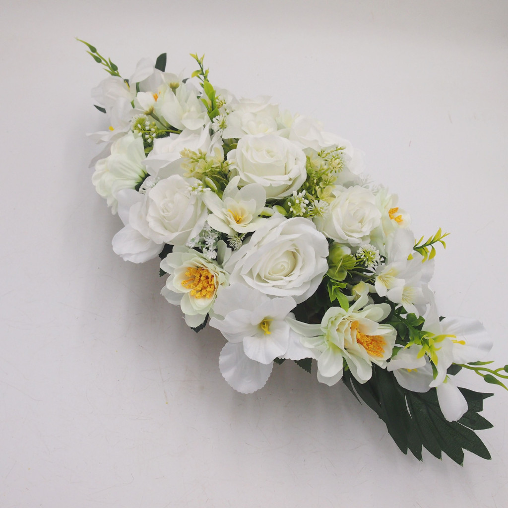 Selyemvirágok száraz oázisba tűzdelve, alatta apró murva nehezéknek, mű tálban.